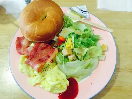 組成份子為二片薯餅+起司+太陽蛋 加上特別的越橘醬