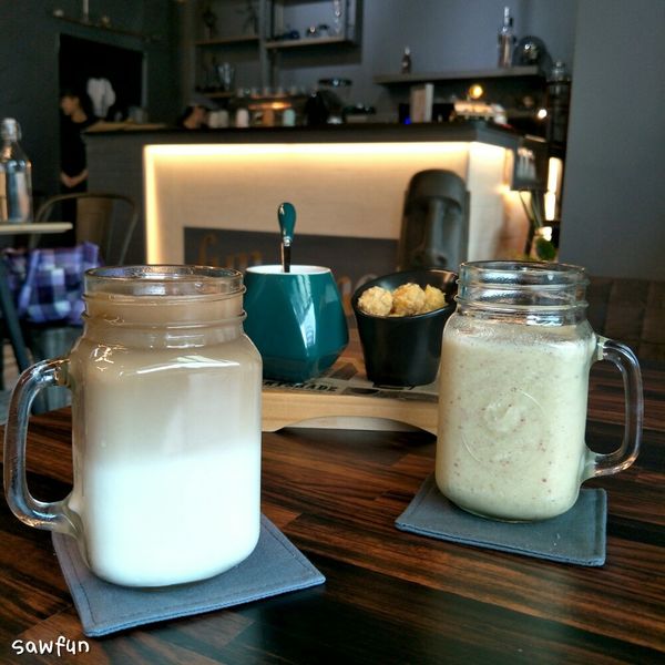 把新鮮堅果打成泥狀和濃郁豆漿混合
