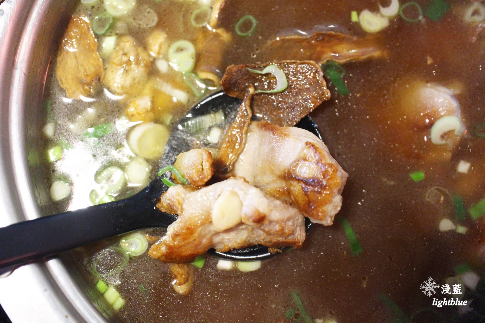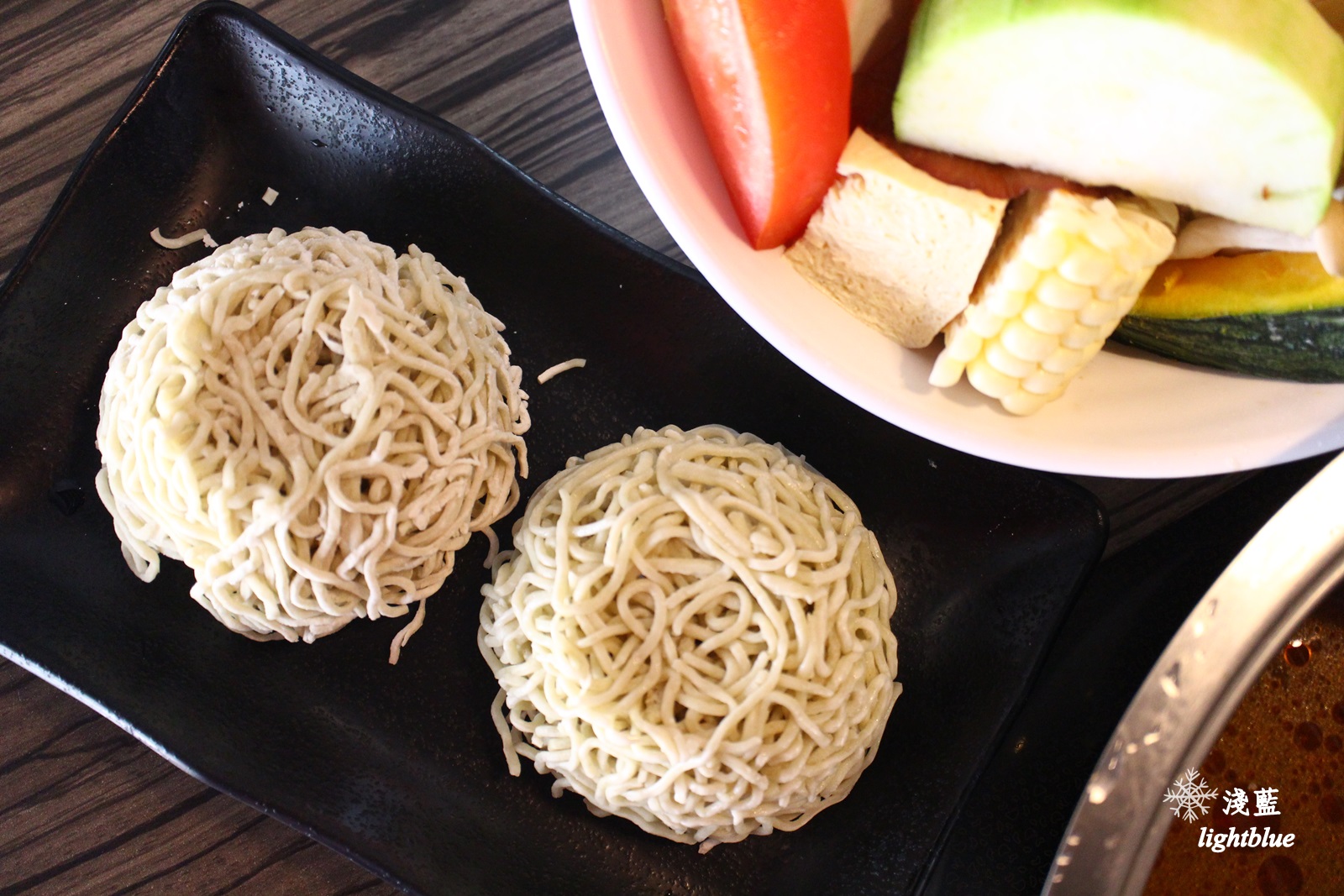 紹興雞醉鍋一上桌就香氣四溢,花雕酒味道頗濃,不過並不會讓人不舒服,雞肉給得又多又大塊,而且貼心去骨,和麻油與薑片一同炒得讓表面呈現略為焦黃,讓雞肉吃起來又甜又有彈性口感,炒過的香氣也跟著釋放在湯頭中,不必再加點肉盤還是配料,直接這樣單吃、涮蔬菜盤就很美味,煮麵也很對味!