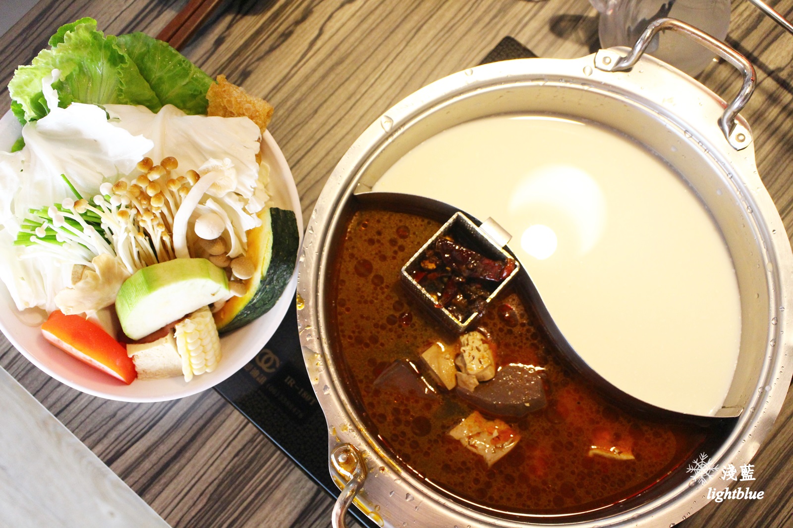 湯頭有多種選擇,這天吃到的是麻辣鍋和牛奶鍋鴛鴦雙拼。麻辣鍋選用價格高昂的四川青花椒,香味鮮明帶一點麻,不會讓人吃了不舒服,訂做的小籃子讓花椒不會流出來,又能在煮的過程中散發香氣;牛奶鍋採用低脂鮮奶,有奶香而不奶膩,帶有牛奶甜味和一點鹹度,跟各種食材都很搭,這兩種湯底我都挺喜歡。
