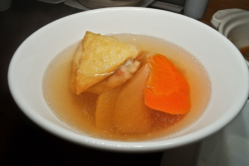 豆干包其實就很像縮小版的阿給, 油豆腐, 包肉, 魚漿封口, 湯裡帶著蘿蔔的鮮甜