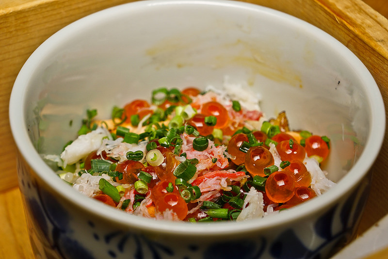 小小一碗, 負擔不大, 但飯好吃, 其上的配料如蟹肉, 鮭魚卵, 比目魚鰭邊等都很好吃