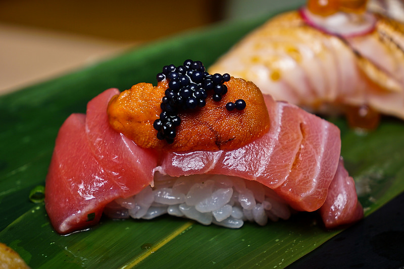 這可是超豪華組合, 鮪魚已經夠好吃了, 再加上海膽與魚子醬!!