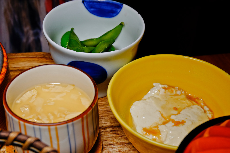 搭配的菜有毛豆(不是用炒的) 茶碗蒸(勾芡勾的很重) 豆腐