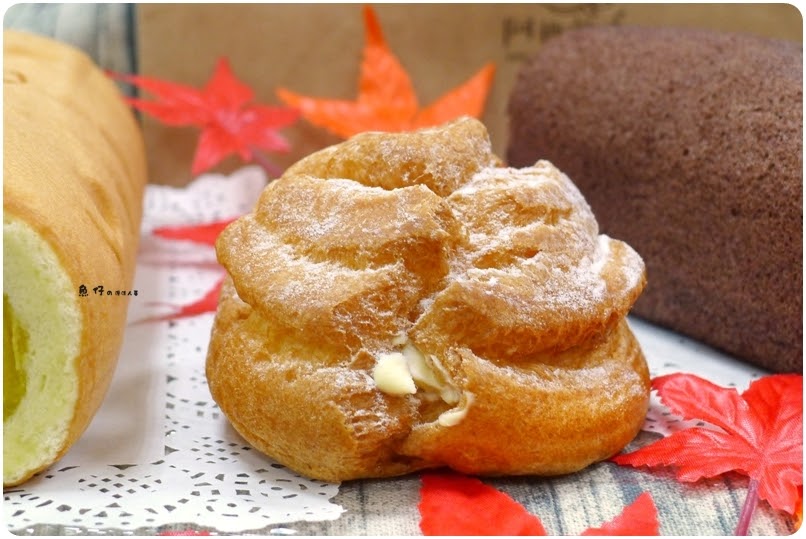 泡芙是薄脆的餅皮上頭還撒有糖粉,看起來超級可口!!