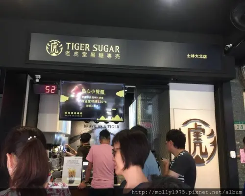 台北士林夜市附近多了一間IG熱門打卡景點的「TIGER SUGAR 老虎堂黑糖專賣」,老虎堂士林店最有名的就是黑糖虎紋,之前妞媽在台中見識過它的魅力,人潮非常多呢!! 老虎堂波霸厚鮮奶(含奶霜)和老虎堂波霸鮮奶一杯55元,現在老虎堂台北就有了,超開心的!! 從士林捷運站2號出口出來,大約步行6分鐘的距離。