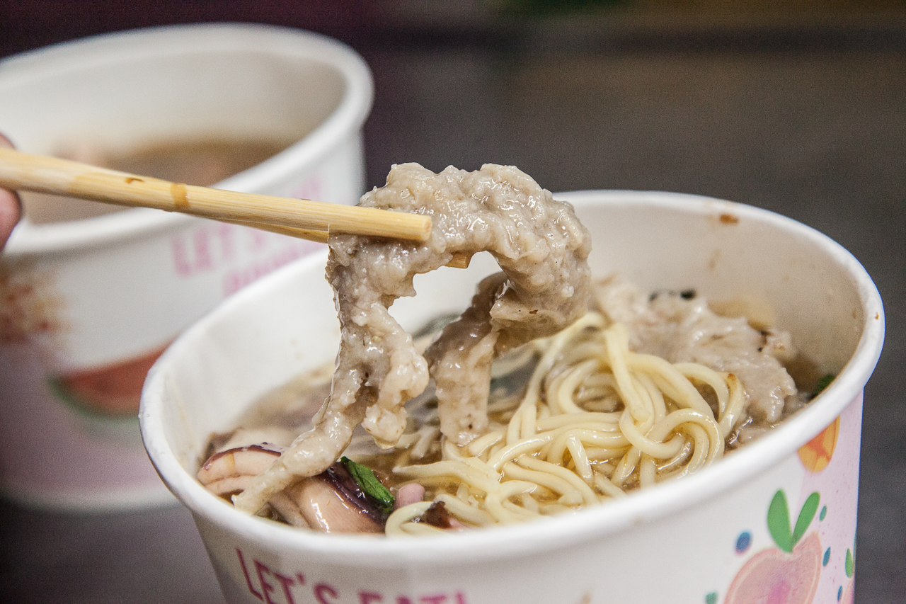 肉焿是老闆手工自製的,做工繁複,所以每日提供的數量有限,是用整條肉下去製作,肉焿吃起來很有彈性還能嘗到飽足的肉香氣,外表吸附著充滿柴魚鮮味的羹湯,超好吃!