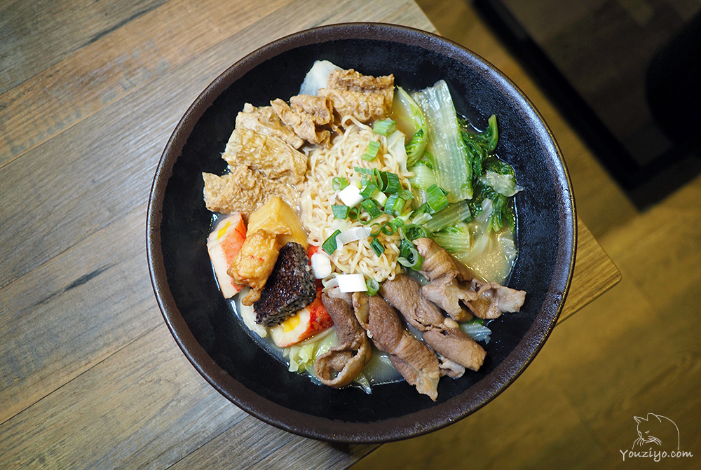 嗜辣的我絕不會錯過任何的麻辣口味。直接選擇超值套餐C餐,以麻辣豚骨湯頭為底,加上入味滑軟的鴨血,加上肉片和滿滿蔬菜、油豆腐和四款配料,若不知道要點什麼料,直接選超值套餐就對了。