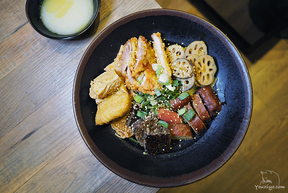 同樣是麻油薑黃的組合,只是變成湯的版本。老實說,一開始我還在想:「誰要在大熱天吃麻油」,嚐了一口就愛上這個滋味。比起乾燒版本,以豚骨高湯熬煮出來的麻油薑黃更為溫潤香醇,夏天喝起來也不覺得燥熱。