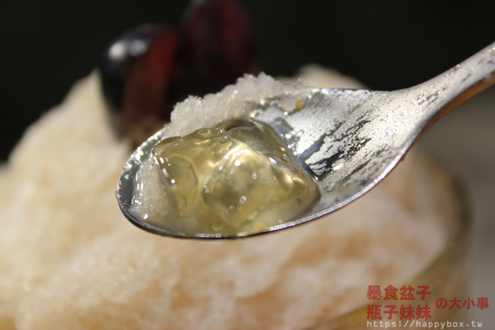 然後大樹玉荷包雪花跟盆子之前在高雄鳳山總店吃到的版本又有了進化,就是底下這些晶瑩剔透的東西~