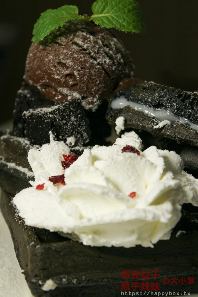 然後除了冰品以外盆子還點了之前在高雄沒有吃過的-花花麻吉黑鬆餅。