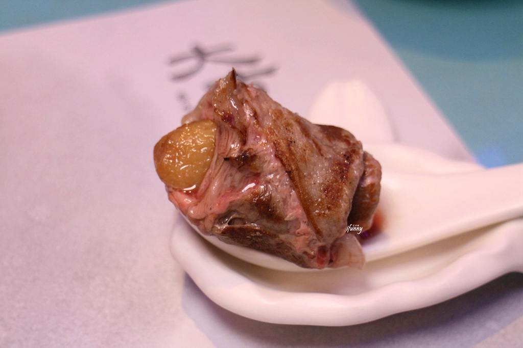 來自加拿大的鴨肝滋味相當地濃郁,搭配油脂豐富的牛肉,兩者的香氣相得益彰,入口即化的迷人口感,令人回味無窮!