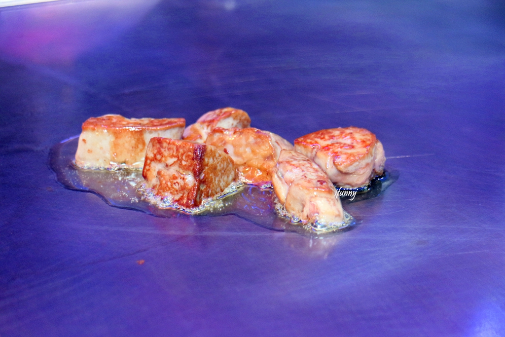 此時傳來陣陣香氣的是,在鐵板上滋滋作響的鴨肝。