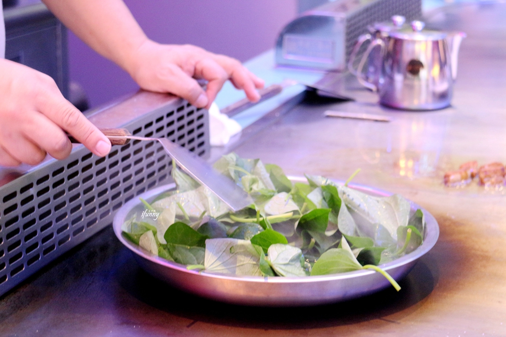 吃鐵板燒的青菜,不是都直接在鐵板燒炒嗎?不不不,大方養生鐵板燒當然是採養生的方式-燙青菜來保留蔬菜的營養。