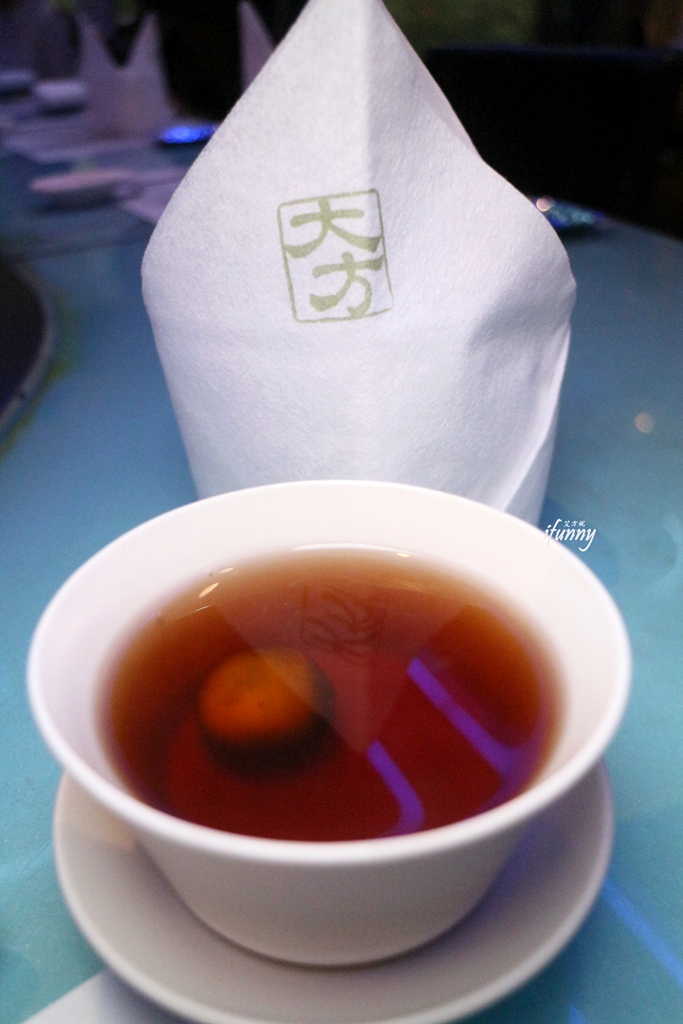 這天加入當季的金桔的黑豆茶,溫潤好順口。這天的服務很週到,總是一直可以喝到溫熱的茶。