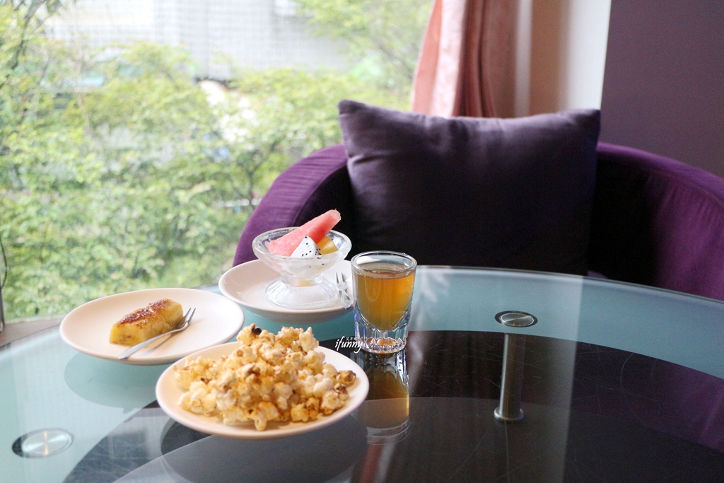 用餐結束後,就移到閣樓沙發區享用甜點、水果,還有一杯山渣茶,其酸澀的口感正好解了口中的油膩感。