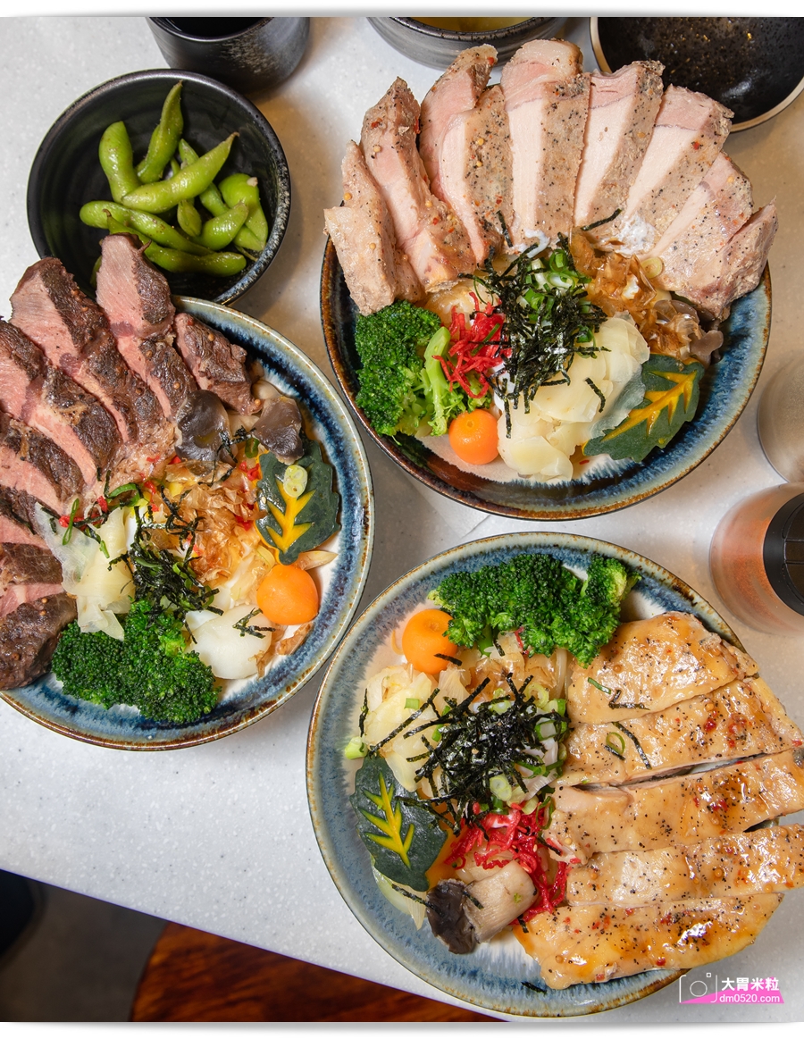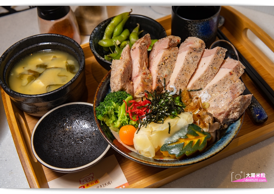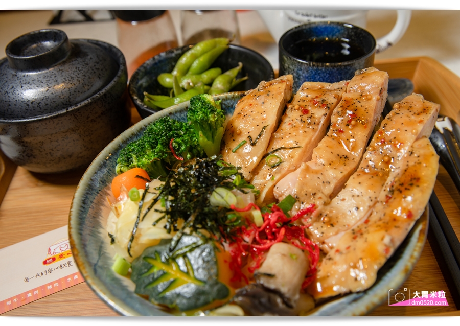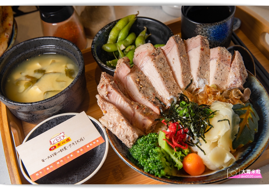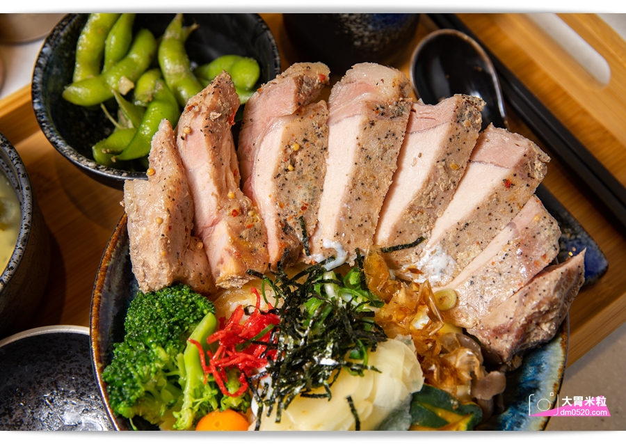 首先上桌是舒肥牛套餐,使用美國嫩煎里肌,裡面透出粉嫩色澤好誘人!