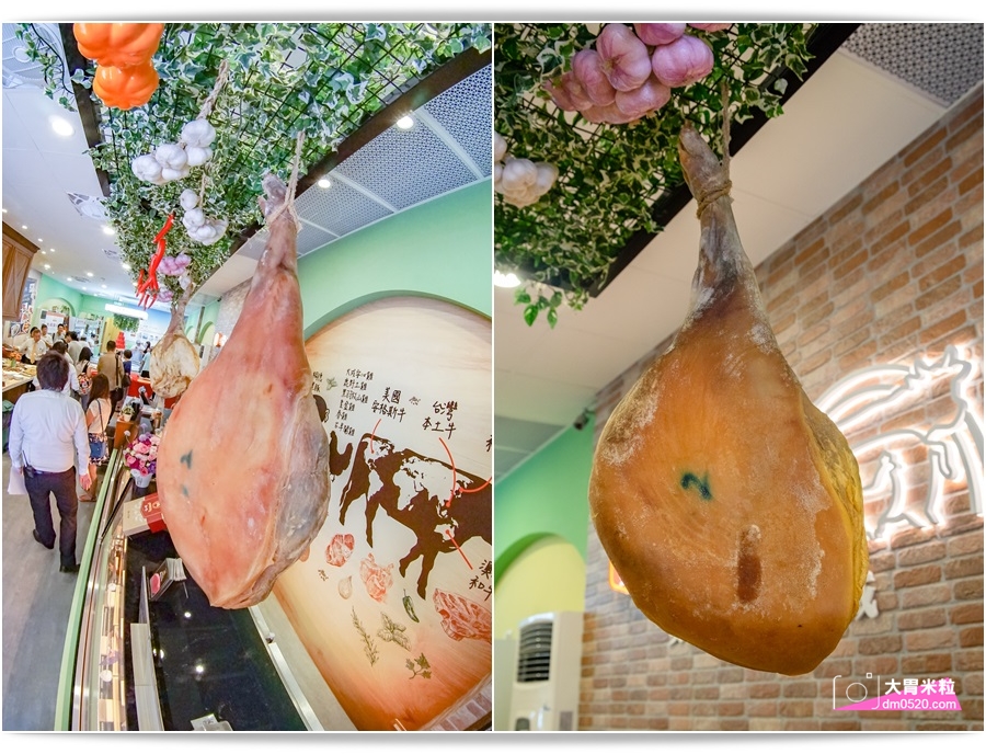 櫃位最上方吊掛則是台畜合作的生火腿,看起來壯觀又氣派!