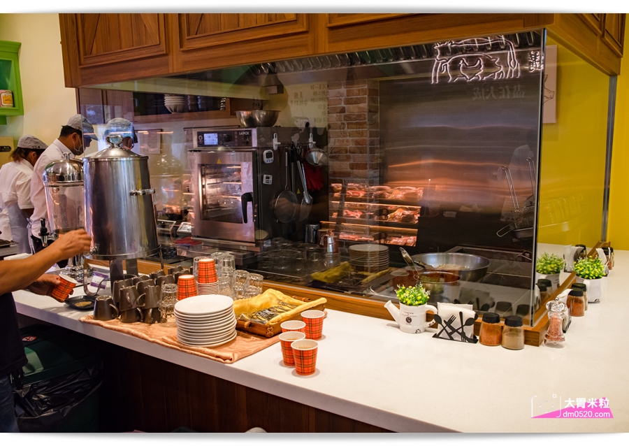 我們一邊坐在吧台區,一邊望著開放式櫥窗裡面煎著牛排好誘人啊!
