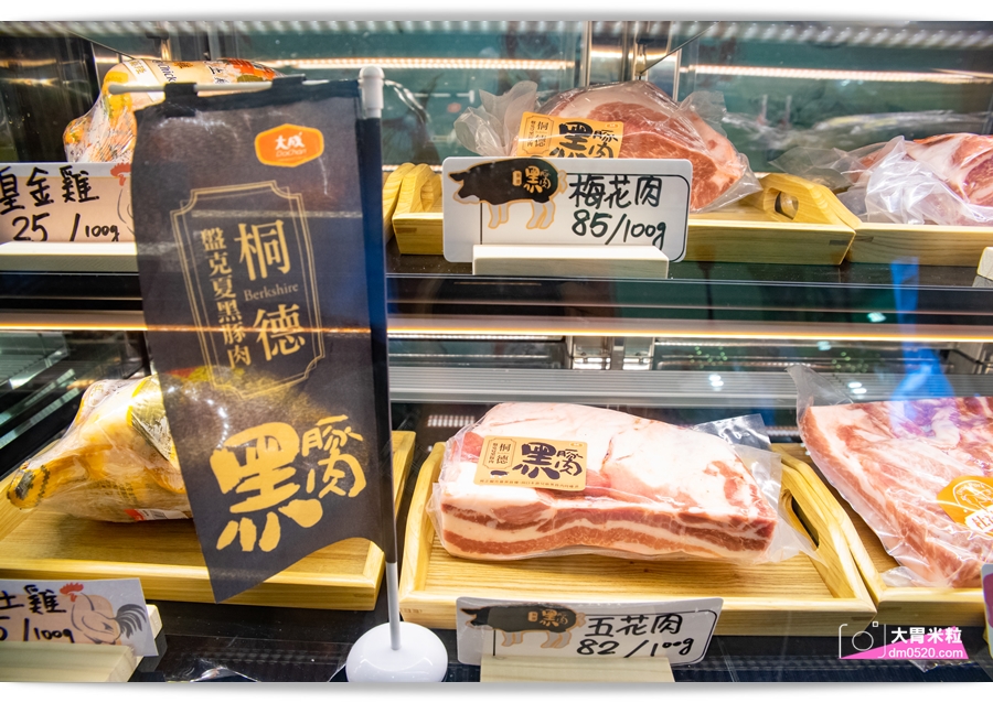 中間櫥窗則有大成獨家培育的桐德牧場盤克夏黑豚、杜洛克紅豬、大成安心豬,