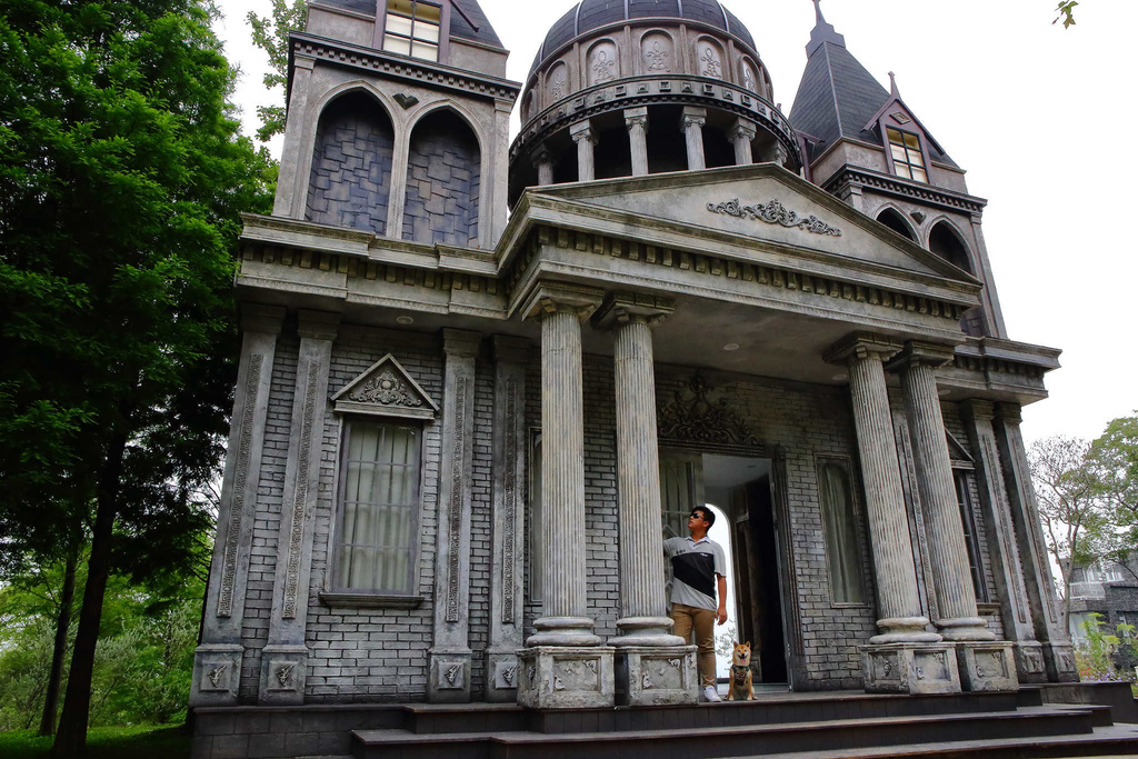 第一區就在停車場旁,一樓的美國風,二樓是超級浪漫的粉紅結婚教堂