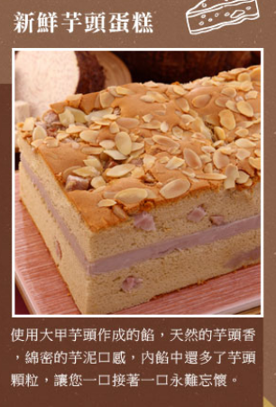 口感綿密且蓬鬆,是好吃的蛋糕,但沒有芋頭跟奶酥來的有特色