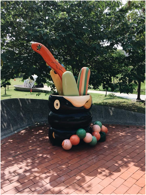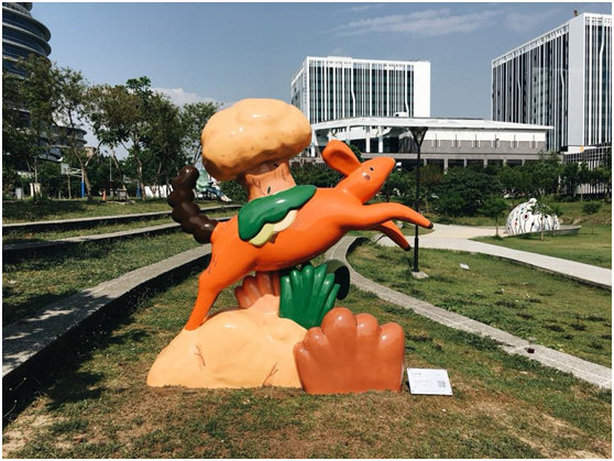 Dali Art藝術廣場開幕前,週邊不少公共藝術裝設,最近的安地羊光影巨人與川貝母的紅色的獸與樹精和他的朋友們。喜歡川貝母《紅色的獸》,有種自戀自愛的紅,紅的那麼自然與突出。
