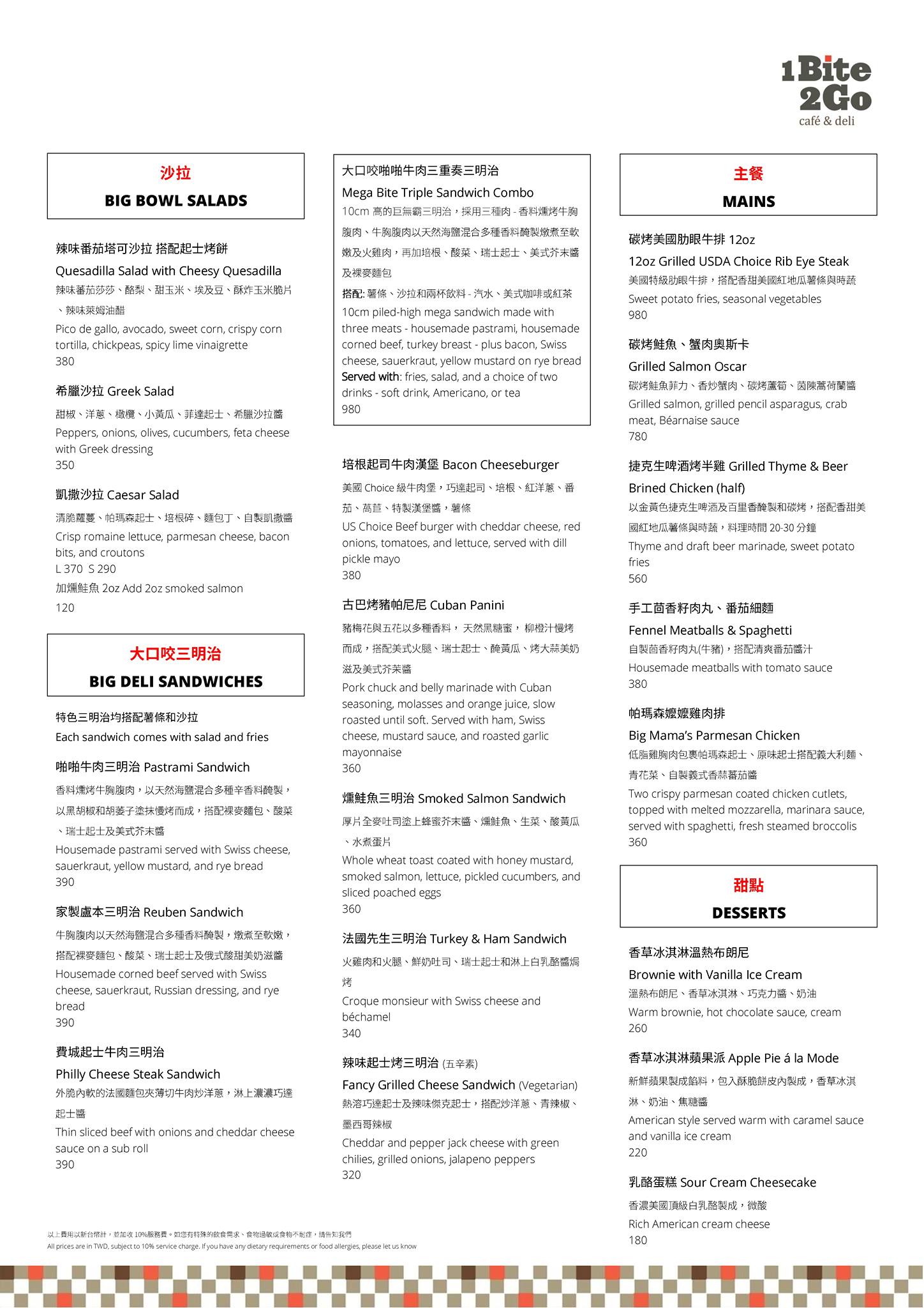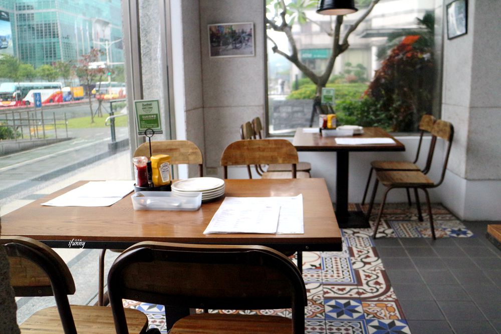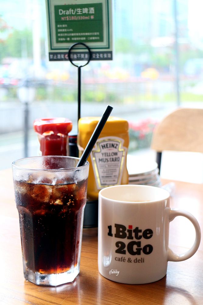 【體驗】1Bite2Go Café & Deli位於台北世貿中心的對面,緊臨捷運台北101/世貿站的3號出口。2012年7月成立,每回來世貿看展覽或是到四四南村,都可以看見這間〕、\明亮的餐廳。
