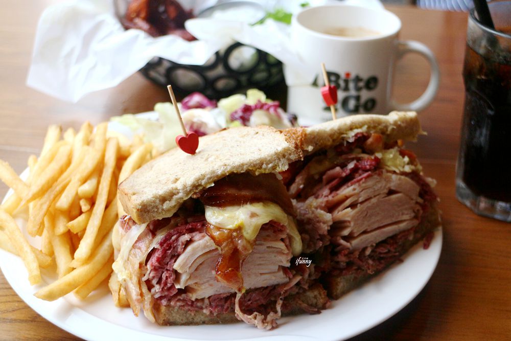 1Bite2Go Café & Deli是信義區知名的美式餐廳,工業風設計輕盈自在,再搭配大片落地窗,台北101身影陪著一起用餐。這天與好友共享大份量的<啪啪牛肉三重奏三明治>高達十公分高的巨無霸三明治,挑戰個人的嘴巴張開程度,就是一種美式的豪邁啊!啪啪牛肉三重奏三明治>