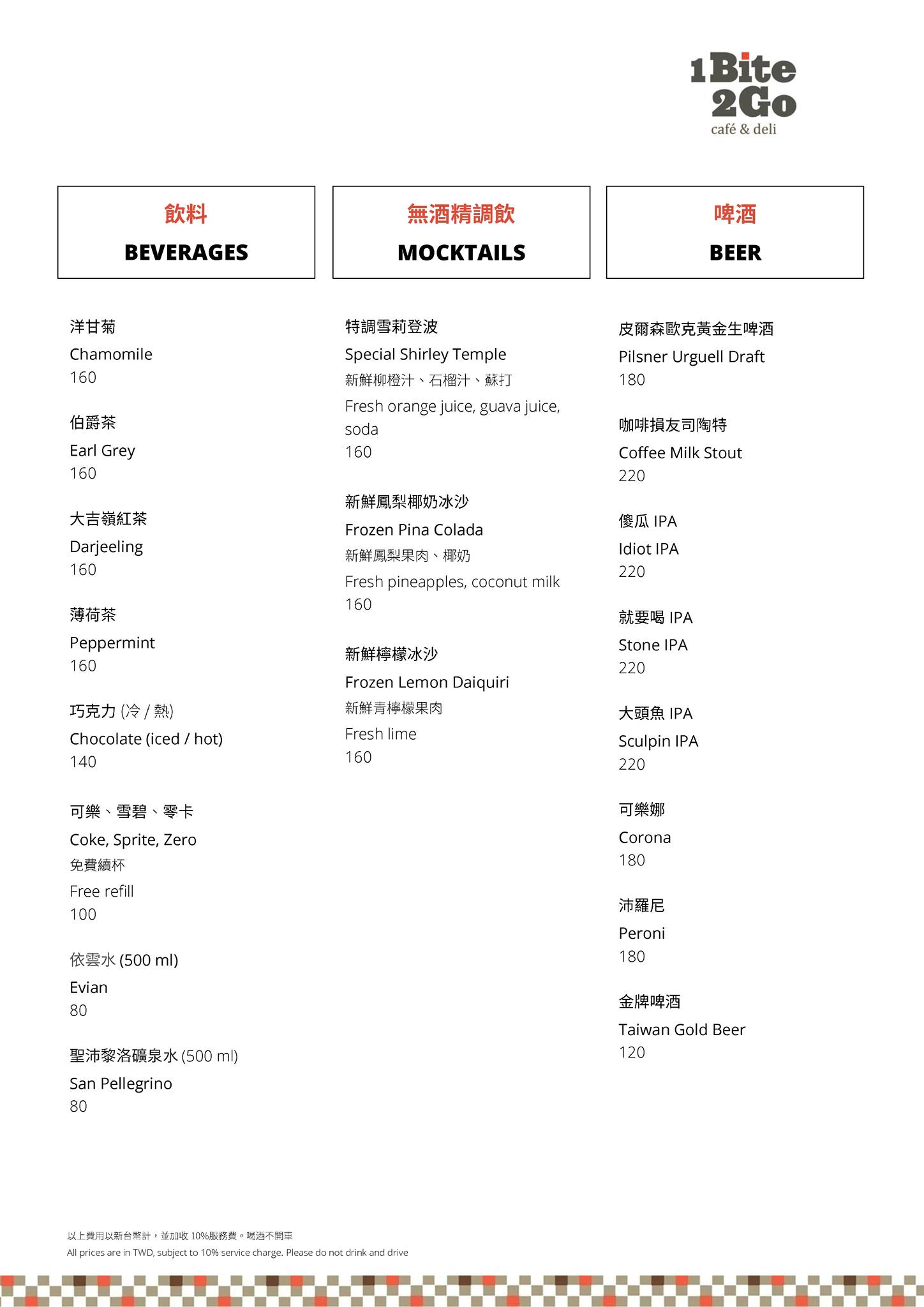 以上菜單請參考,以下價格需加10%服務費。