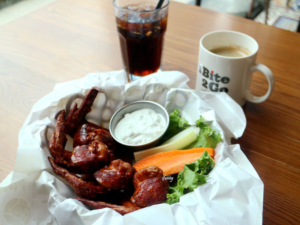 聽說每年超級盃當天,全美國要吃掉12.5億隻雞翅,因此來到1Bite2Go Café & Deli,怎可錯過這美式餐廳的經典餐點-水牛城辣雞翅呢?