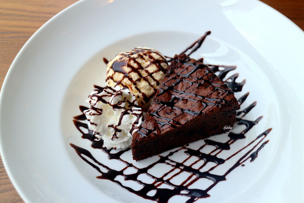 美式甜點的經典之作,溫暖的布朗尼不是太甜,紮實中有鬆軟,搭配一旁的鮮奶油及冰淇淋,冷熱交織出甜而不膩的好滋味。