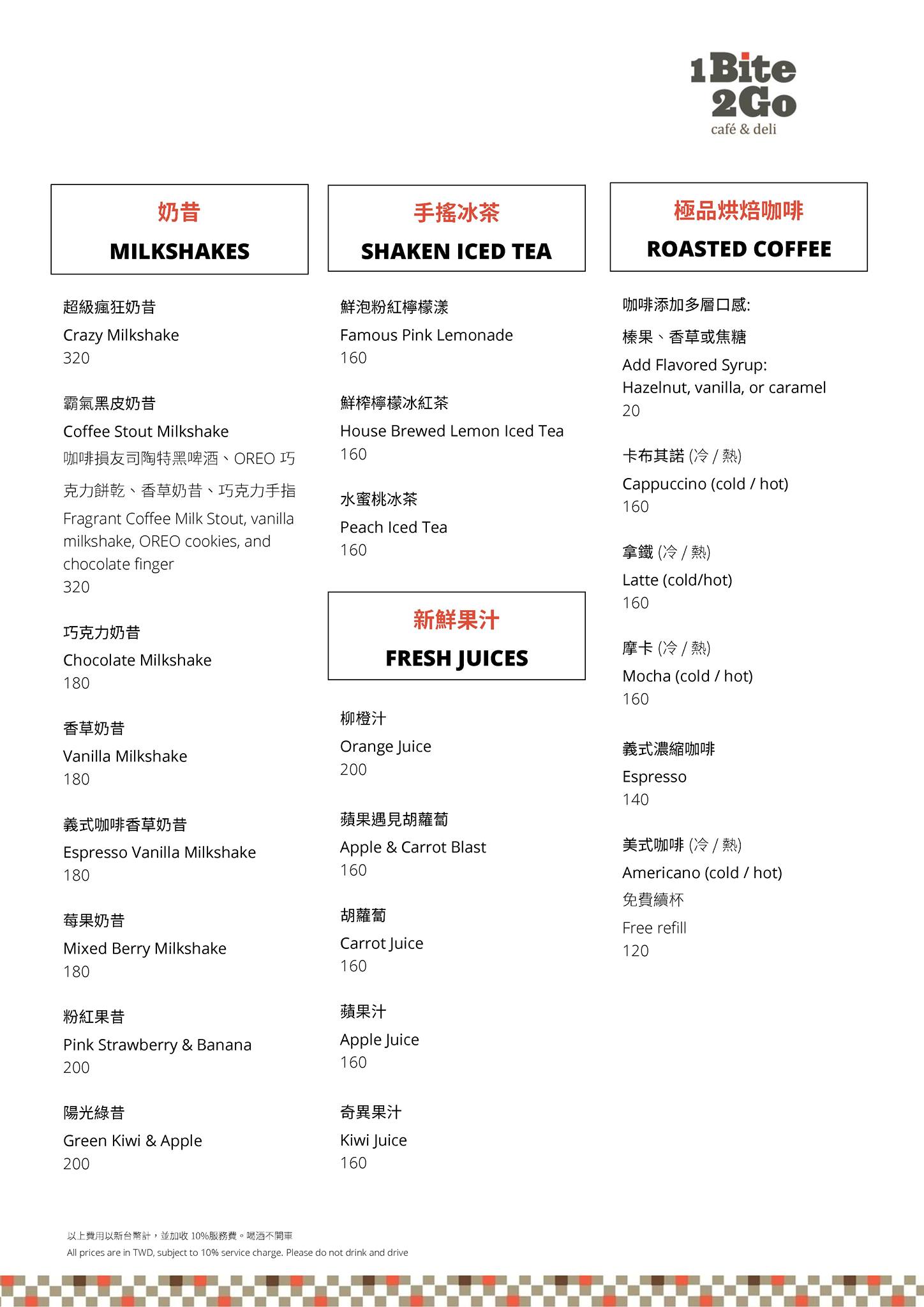 進入1Bite2Go Café & Deli的店內,挑高的空間大片的落地窗,寬敞明亮的空間,令人覺得相當地舒服。