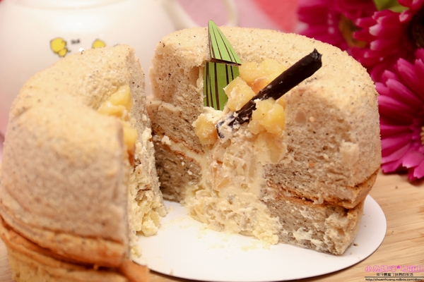 外層是伯爵紅茶戚風蛋糕,所以一靠近就能聞到紅茶香氣。