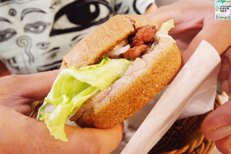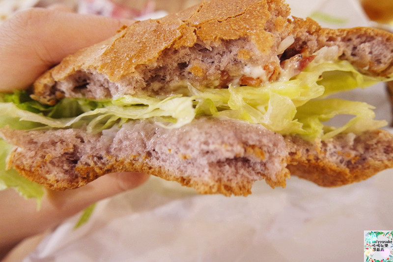 ♡漢堡有用漢堡紙裝著,不沾手的方便食用設計,讓大家都可以很豪邁的大口咬下去,我的燻鴨紫米堡,光是它的漢堡皮就覺得超養生了啦!漢堡皮的厚度也非常剛好,吃得到實在感的鴨肉。
