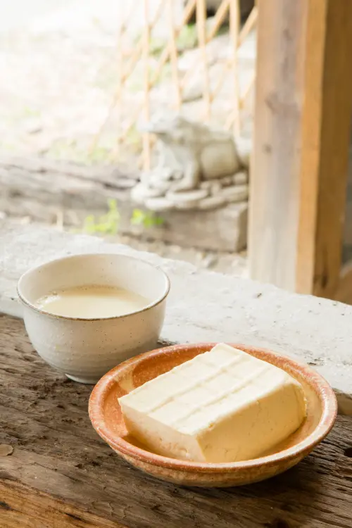 使用台灣黃豆及鹽鹵手作的豆腐.