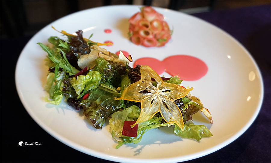 蔬菜相當新鮮,淋上些許的油醋醬後,清甜爽口。