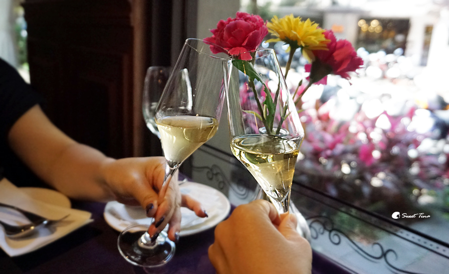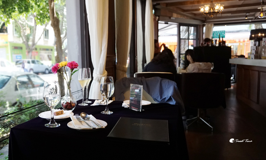 而我們今天就坐在靠窗的座位,桌上擺放花朵後更顯浪漫呢。
