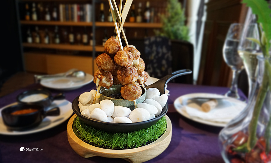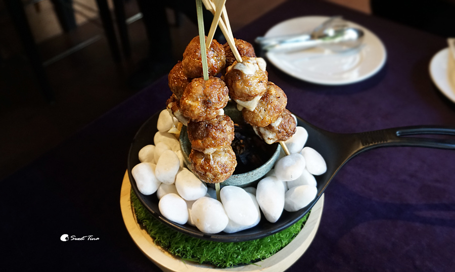 這肉丸子的裝飾也超吸晴的,有種草地野炊的感覺,中間還放了木炭保持溫度呢,所以每口都可吃到溫熱的美味丸子。