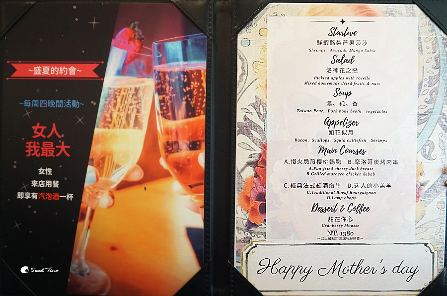 這份母親節套餐五月份期間都可以享用到,裡面有些菜色是Tina前面介紹過的,搭配起來相當划算,想來Duchamp感受不一樣的餐點創意和美味的話,一定要把握機會喔,在這與大家分享囉!