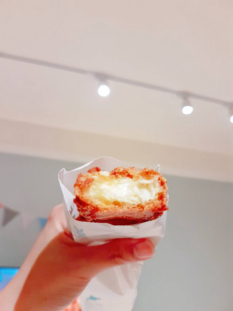 這天我們很幸運的沒有排到甚麼隊,幾乎是5分鐘內就買到了超級幸運😝,一根根手工現烤的酥脆泡芙餅皮看起來好療癒啊😚