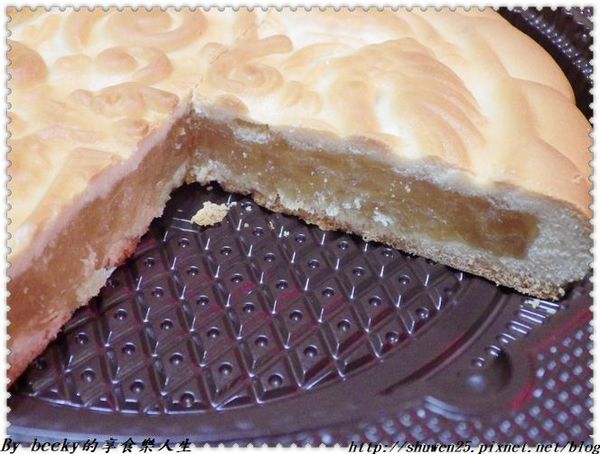 把鳳梨椰果餅切開,可以看很厚實的外餅皮,裡頭紮實的鳳梨餡~