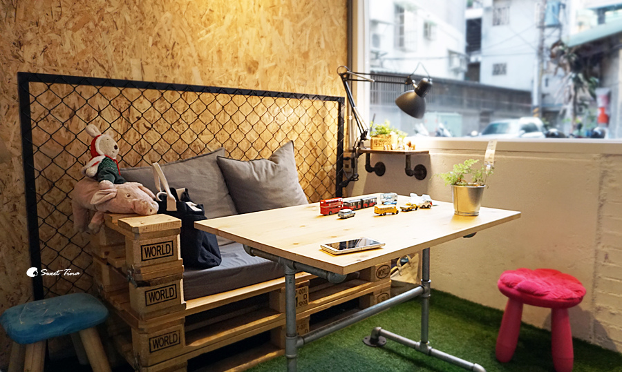 座位雖然不多,但挺喜歡3PM的用心及巧思,這區是可愛的VIP座位(我自己取的XD),有軟墊、有玩偶,還有可愛的公仔,但桌上的小車子是瑋兒的啦,放在上頭完全沒有違和感呢。