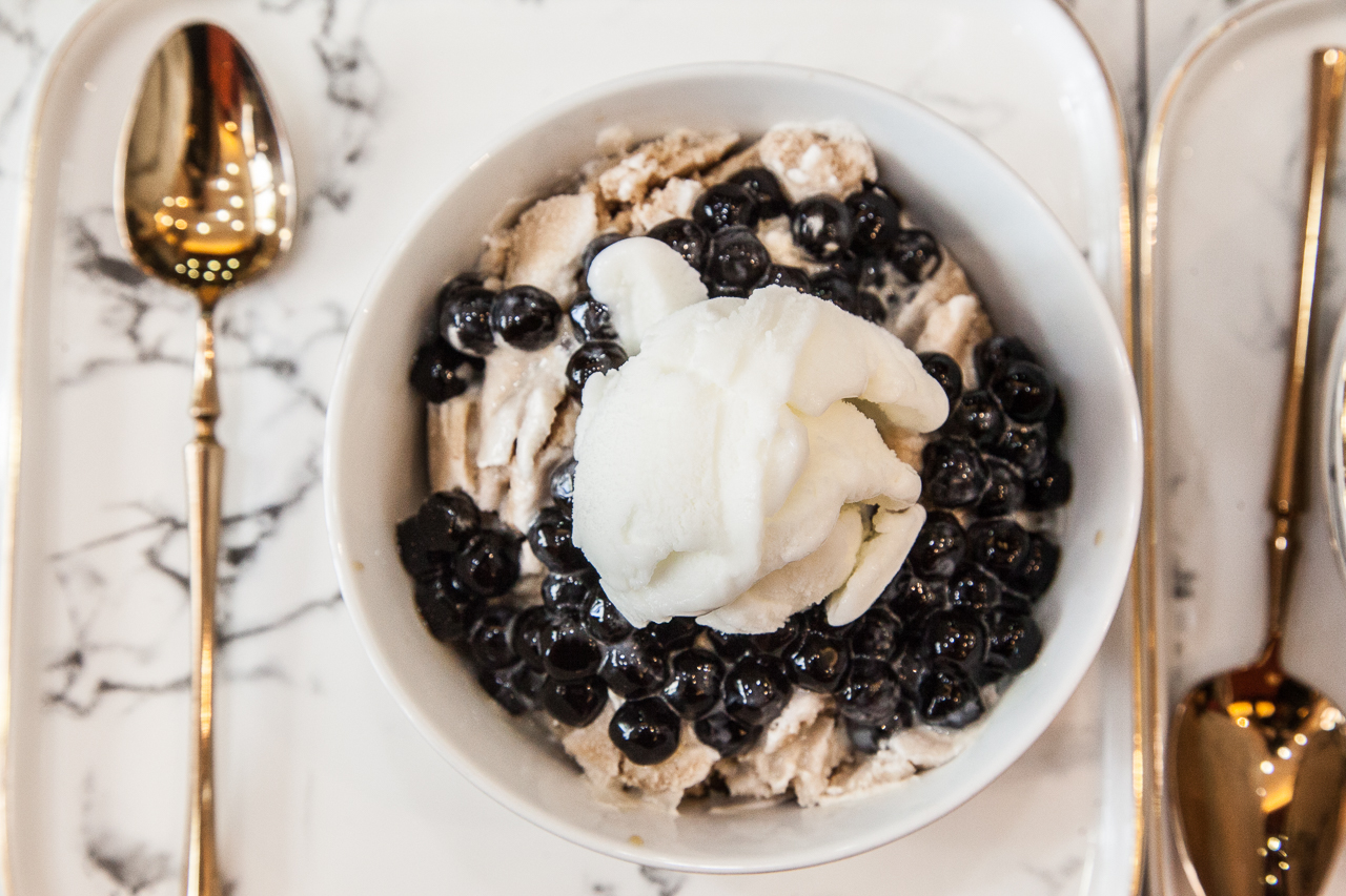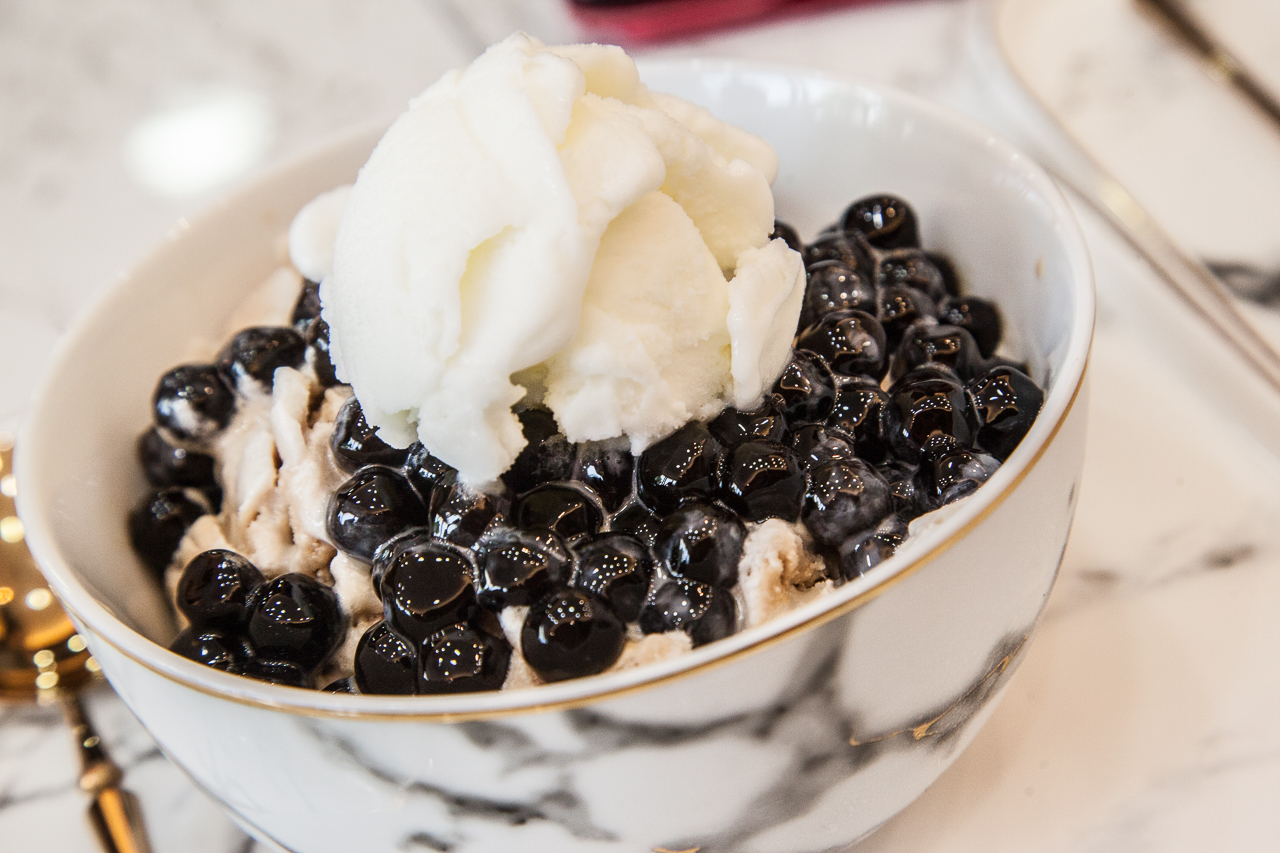 天下珍奶冰就是珍珠奶茶冰品版,下面的雪花冰是珍珠奶茶口味的,吃這冰感覺就像在喝珍珠奶茶一樣,珍珠冰鎮過口感超Q彈,還有淡雅的黑糖香氣