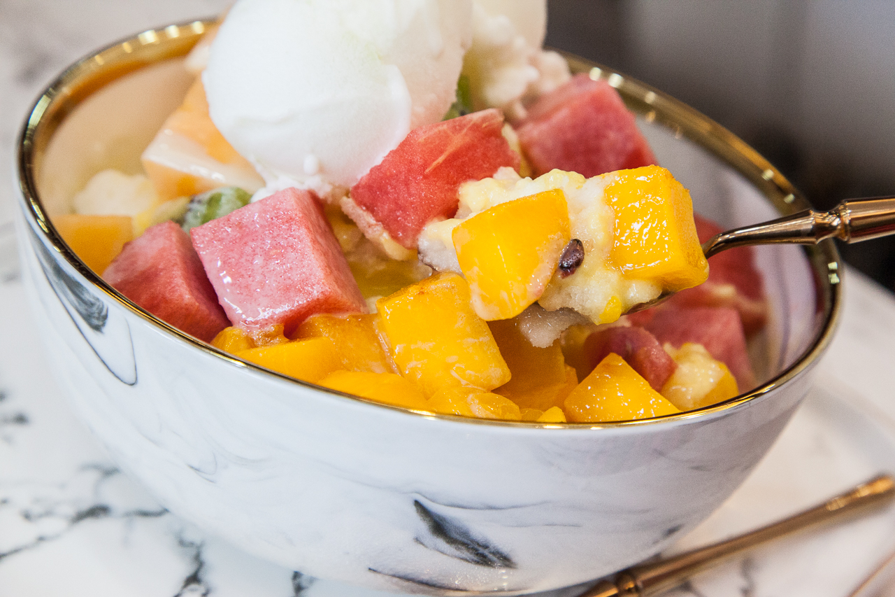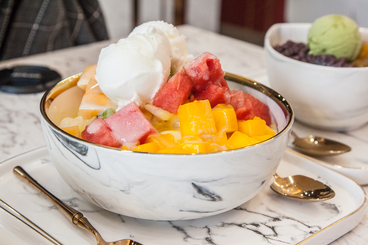 綜合鮮果激爽的水果都很新鮮,甜度也都很夠,下面的冰是用柔滑的雪花冰,入口輕輕一抿就化開了,還帶有淡淡的乳香,雪花冰上也淋了特製的芒果醬,微酸帶甜很爽口