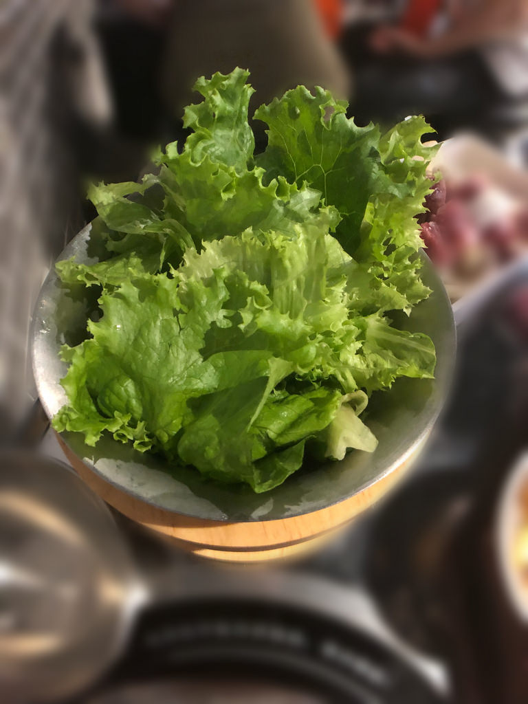 我有跟店員聊到這塊,台灣的韓式燒肉所備的生菜跟韓國完全不同,因為韓國的生菜包肉,咬下去會有生菜本身的一種香氣,