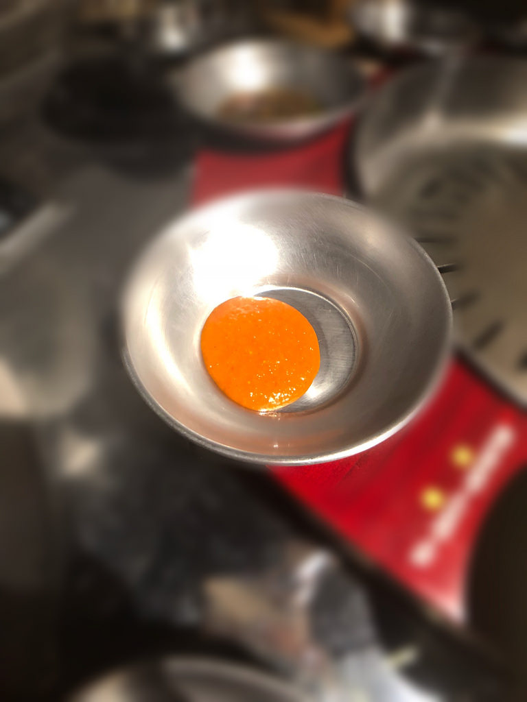 沾了之後,完全沒有很鹹的口感反而散發出一種香油的味道,不會讓人吃了肉又感到反感油膩;