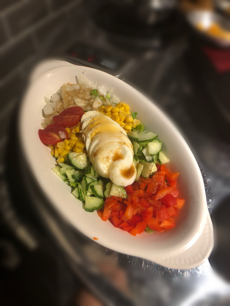 沙拉感覺配菜都很新鮮;紅椒、小黃瓜、玉米、洋蔥、水煮蛋;搭配本身的沙拉醬,吃起來清新也很開胃,份量蠻足夠三個人食用,吃下去就知道這間店很用心,食材都用最新鮮的
