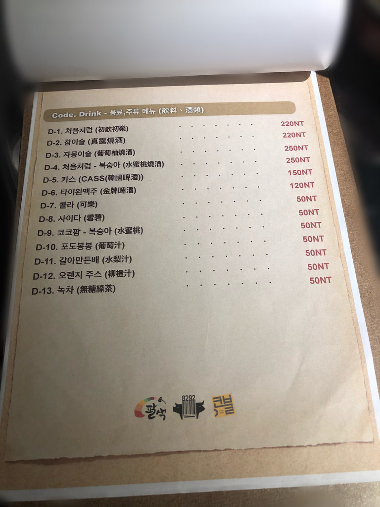 ▲特別的是,菜單有韓文也有中文,而且菜單分類很整齊,不用擔心看不懂