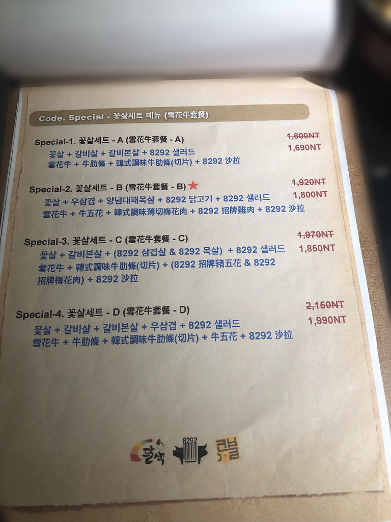 ▶我們這次的是8292C套餐:8292招牌豬五花&8292招牌梅花肉+韓式調味牛肋條(切片)+牛肋條+8292沙拉